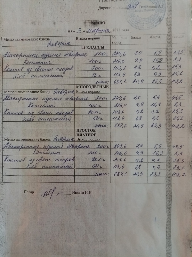 (Меню на 03.03.2022)