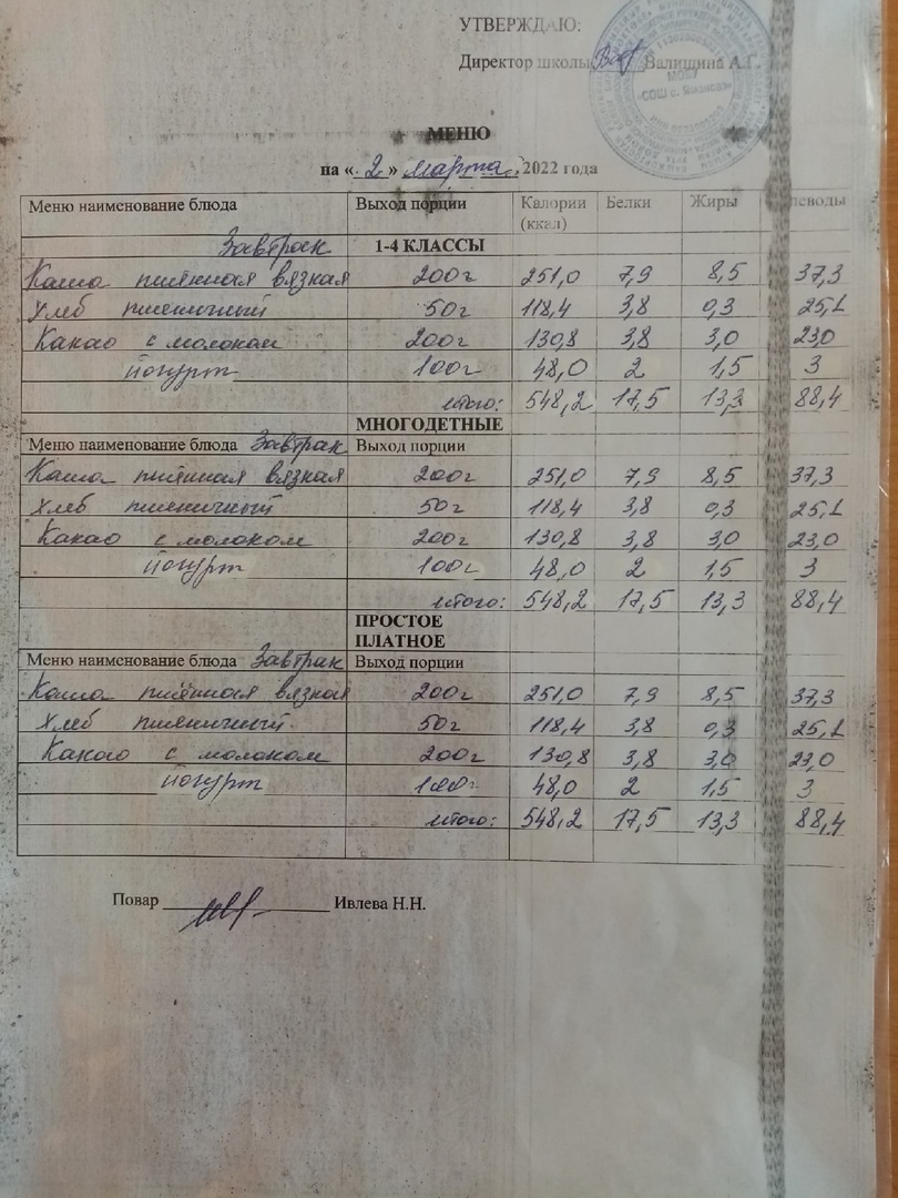 (Меню на 02.03.2022)