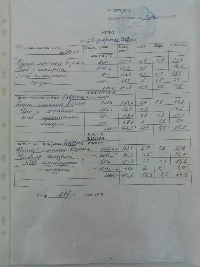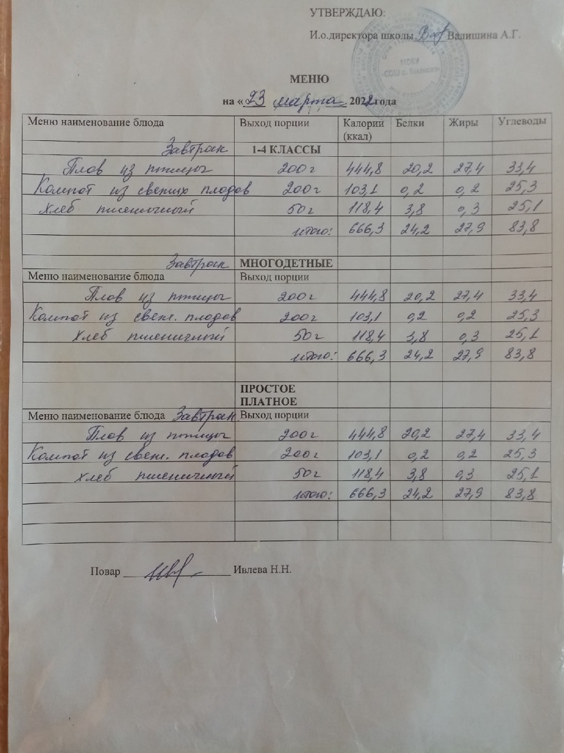 (Меню на 23.03.2022)