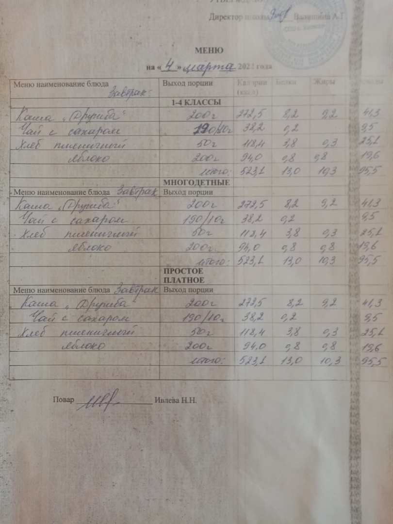 (Меню на 04.03.2022)