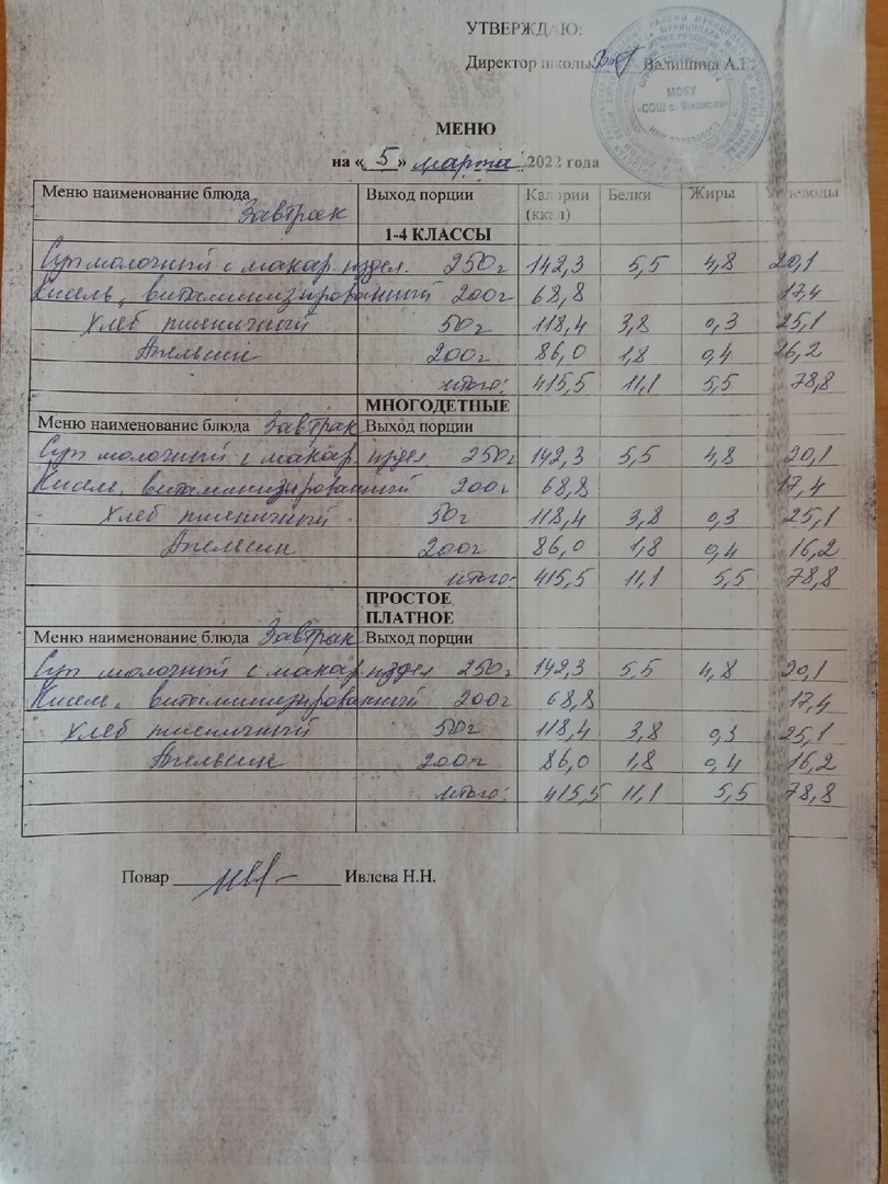 (Меню на 05.03.2022)
