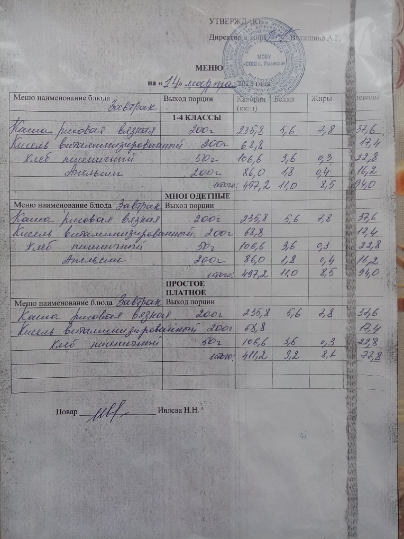 (Меню на 14.03.2022)