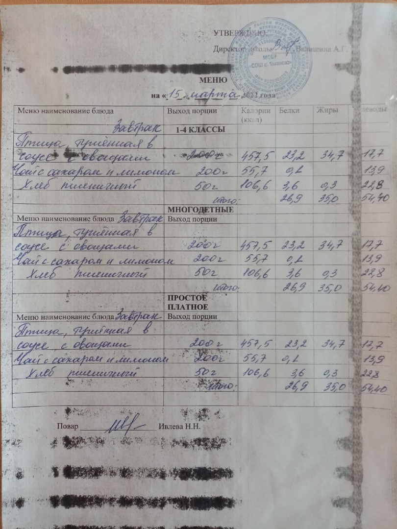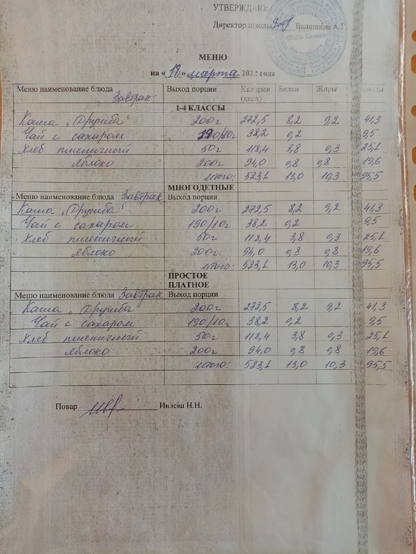 (Меню на 15.03.2022)