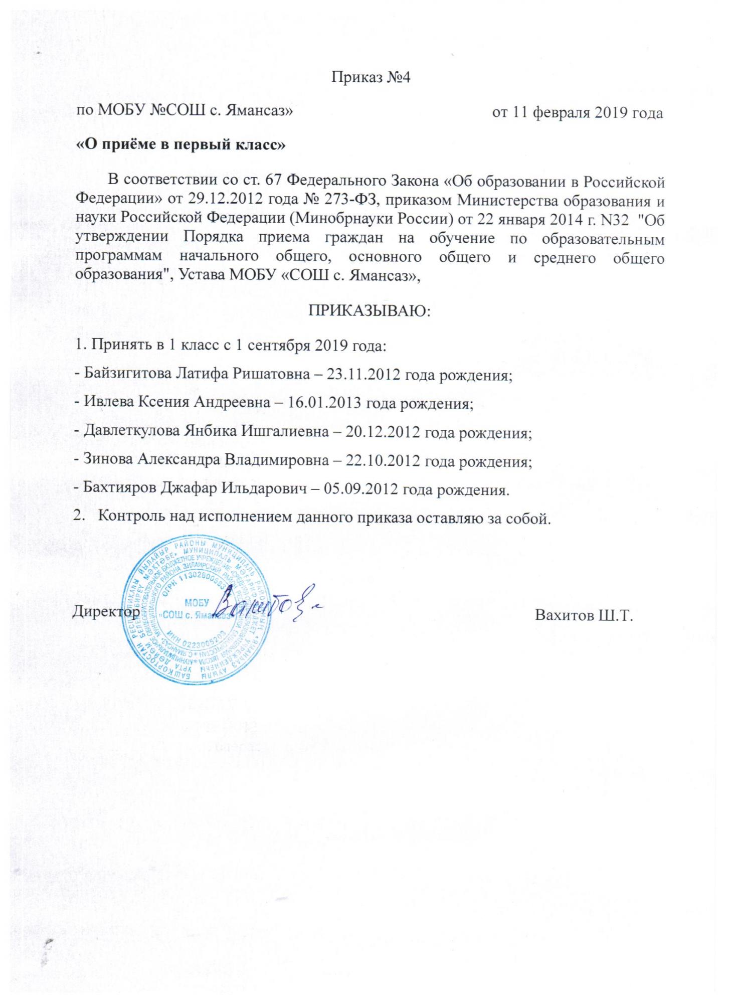 вакантным местам МОБУ «СОШ с. Ямансаз»